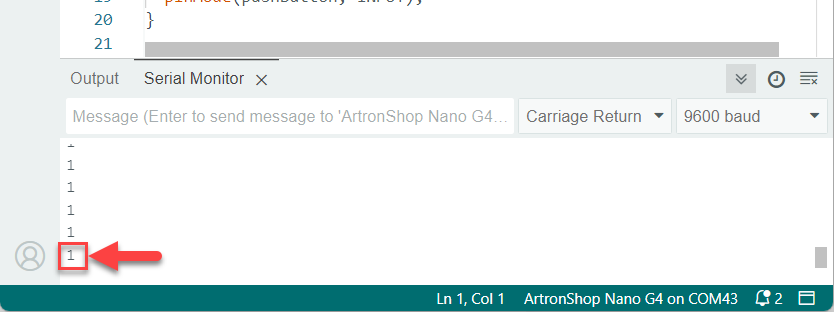 เมื่อกดสวิตช์ ตัวเลขจะเปลี่ยนเป็น 1 แทน