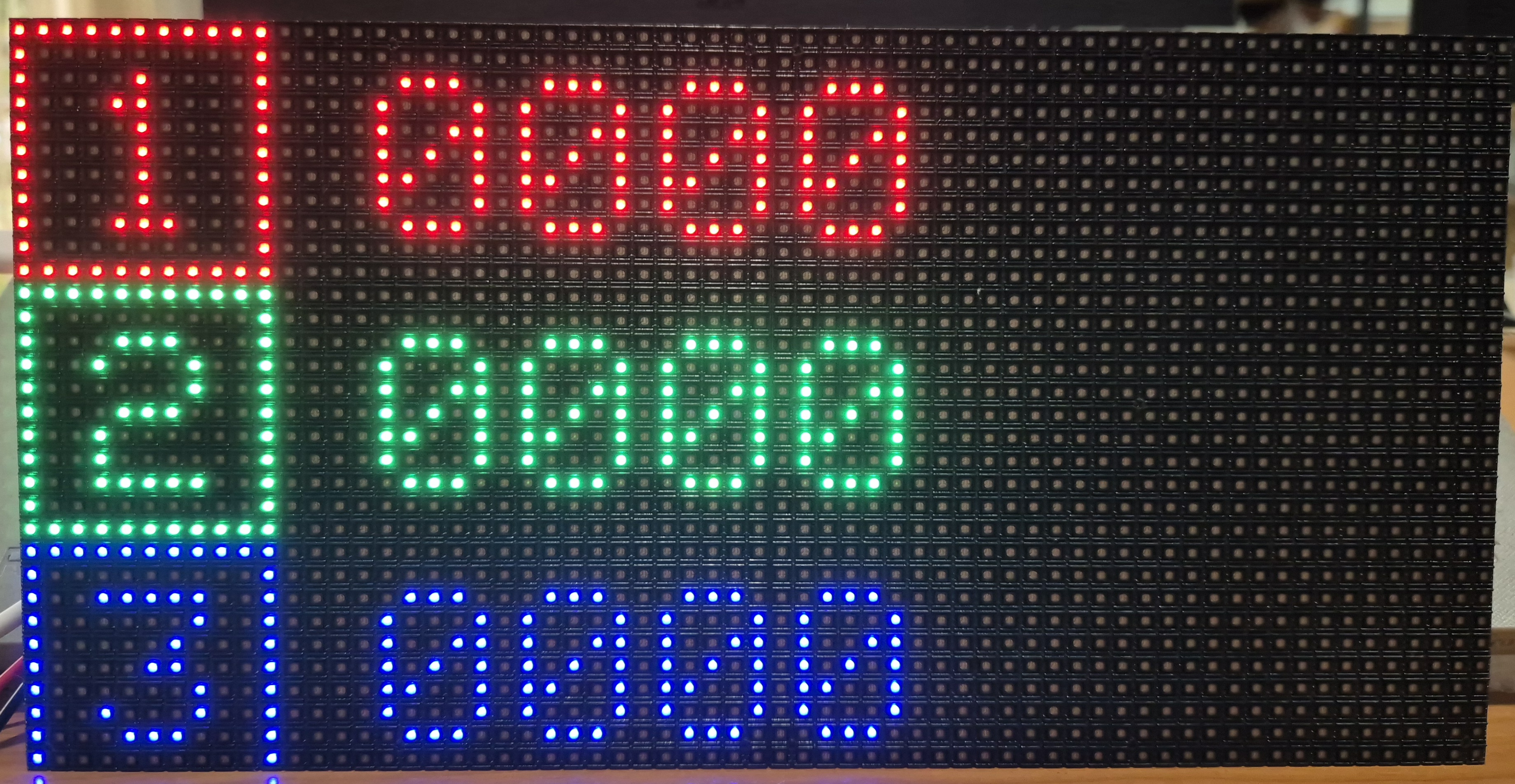 การควบคุมการแสดงผล ทำผ่านการป้อนสัญญาณควบคุมเข้า HUB75