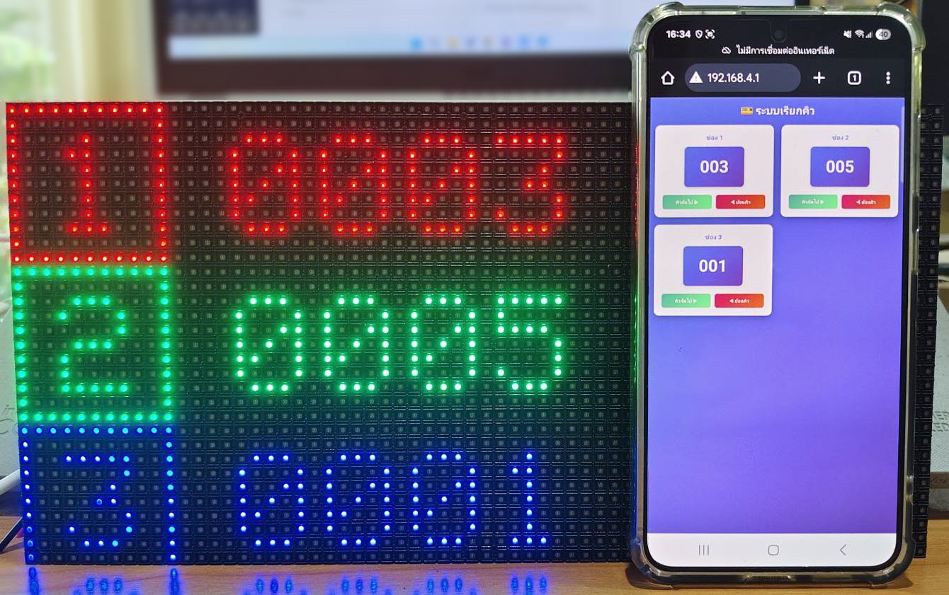 ในยุคดิจิทัลที่เทคโนโลยีเข้ามามีบทบาทสำคัญในการอำนวยความสะดวกแก่ผู้ใช้บริการ ระบบเรียกคิวที่มีประสิทธิภาพจึงกลายเป็นสิ่งจำเป็นสำหรับธุรกิจและหน่วยงานต่างๆ บทความนี้จะนำเสนอการสร้างระบบเรียกคิวอัจฉริยะด้วยป้ายไฟ LED P4 ที่ให้ความคมชัดสูง ควบคุมโดยบอร์ด ESP32 ซึ่งเป็นไมโครคอนโทรลเลอร์ที่มีความสามารถด้าน WiFi และ Bluetooth ในตัว ทำให้สามารถสั่งงานผ่านสมาร์ทโฟนได้อย่างสะดวกสบาย ระบบนี้เหมาะสำหรับใช้งานในคลินิก โรงพยาบาล ธนาคาร หรือหน่วยงานบริการต่างๆ ที่ต้องการจัดการคิวลูกค้าอย่างเป็นระบบ ลดความยุ่งยาก และเพิ่มความประทับใจให้กับผู้รับบริการ