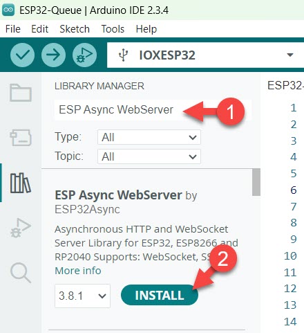ติดตั้งไลบรารี่ Async TCP และ ESP Async WebServer เพิ่มเติม เพื่อความสะดวกในการสร้าง Web Server ด้วย ESP32